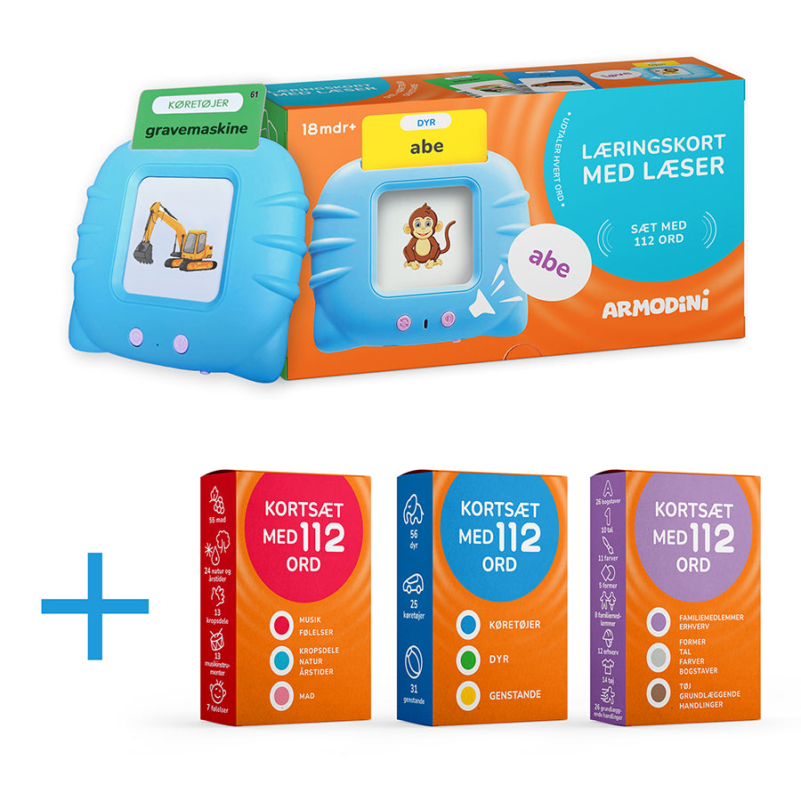 Det komplette sæt indeholder en læseenhed og alle 336 ord: